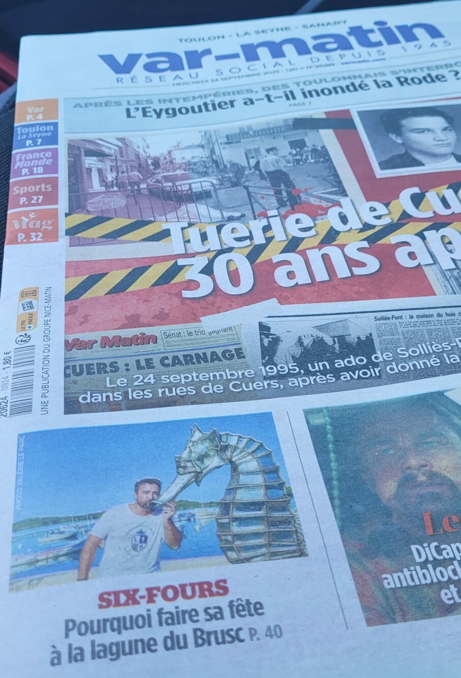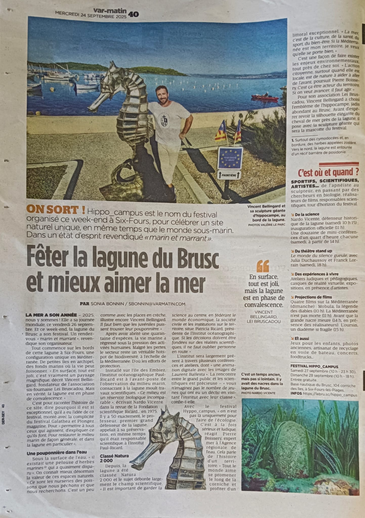 Principauté le brusc dans la presse ARTICLES DE PRESSE VAR MATIN Création de notre asso - 15 06 2024 L'hippocampe du Brusc peut-il revenir ? - 22 09 2024 Réunion publique d'information - 01 10 2024 Galette des Princes - 15 01 2025 Amnésie Ecologique , la Méd' il y a 80 ans - 25 05 2025 ARTICLES INTERNETS Plongez MAGAZINE ! - Festival HIPPO_CAMPUS 2025 Plongez MAGAZINE ! - Chronique de la mer LE VAR ET VOUS - Festival HIPPO_CAMPUS 2025 22-med.com - Festival HIPPO_CAMPUS 2025 TV BFM VAR TOULON Sauvetage Mobula - 19 08 2024 Planète LOCALE - 18 09 2024 ON A RENDEZ-VOUS - 18 08 2025 Requin Griset échoué en lagune - 04 09 2025 nous soutenir